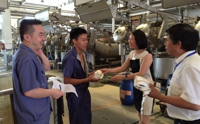 近来连日高温,为了解一线员工的工作环境,“宏达高科”董事长沈国甫到生产现..