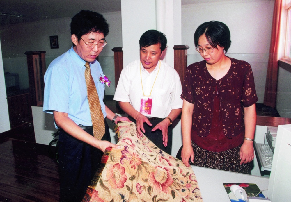 中共吉林省委书记(时任浙江省副省长)巴音朝鲁在宏达经编股份有限公司测试中心考察