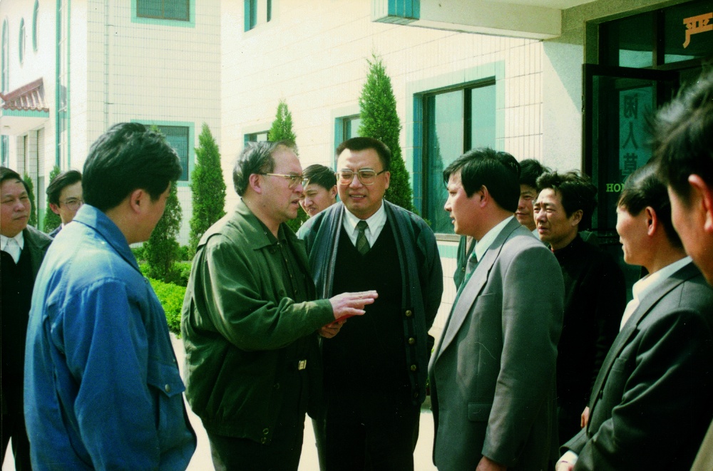 原国家人事部副部长、时任浙江省省长万学远(左二)等领导在浙江宏达经编股份有限公司指导工作