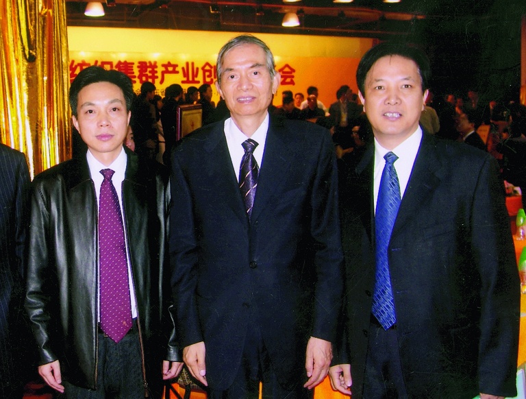 时任中国纺织工业协会副会长许坤元与时任中共海宁市委书记冯水华、董事长沈国甫在海宁
