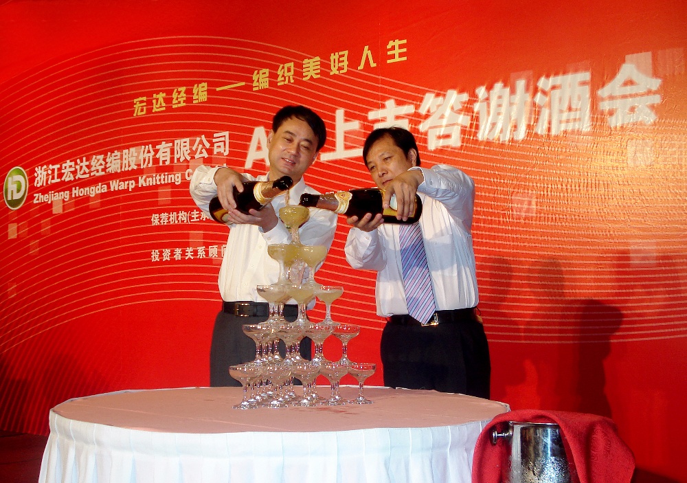 嘉兴市人大常委会副主任(时任中共海宁市委书记沈利农)在“宏达经编”新股上市仪式上