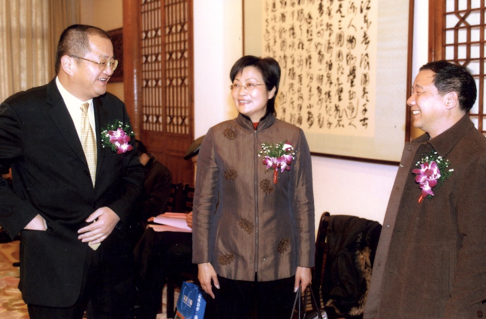 海宁市人大常委会主任(时任中共海宁市常务副市长)徐辉陪同前往考察的香港实业家查济民先生在宏达经编实业公司