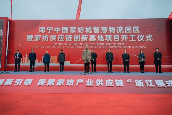 11月27日上午,海宁中国家纺城智慧物流园区暨家纺供应链创新基地项目开工仪式在智慧物流园区工地举行。中国纺织工业联合会副会长、流通分会会长夏令敏,海宁市政协副主席史丹夫,许村镇党委书记杜莹池,浙江省仓储行业协会会长、供应链协会执行会长赵成锋,宏达高科董事长沈国甫等领导,以及项目施工单位、许村家纺企业、物流企业代表等百余人共同见证项目启动。