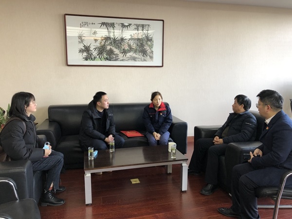 1月29日下午海宁市联创办副主任沈洵奔一行来到宏达高科慰问海宁市道德模范沈海燕,许村镇党委委员陆凛、公司领导陪同。