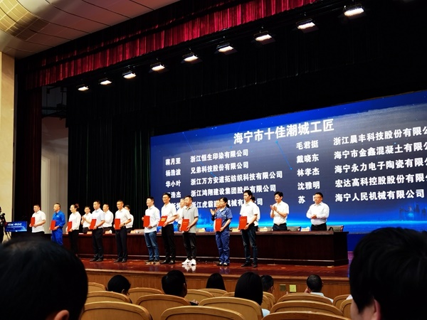 在5月26日召开的海宁市人才科技创新暨高质量发展大会上,宏达高科沈雅明被评为“海宁市十佳潮城工匠”。