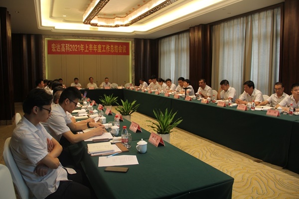为更好地总结上半年经营工作情况,明确下半年经营工作重点,找差距、补短板,确保公司全年度经营目标任务顺利完成。7月17日,宏达高科召开2021年半年度工作总结会议,各部门负责人围绕生产经营、市场开发、降本增效、团队建设等方面工作进行汇报。分管领导也分别汇报了上半年重点工作和下半年工作计划。宏达高科董事长沈国甫,总经理许建舟出席会议并发表重要讲话。