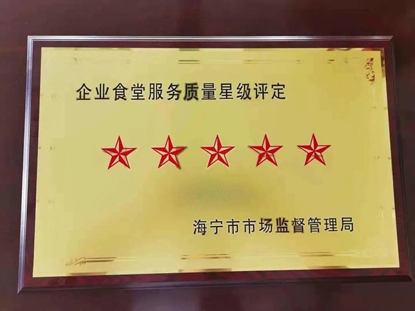 2021年7月,宏达高科食堂获海宁市市场监督管理局颁发的2020年度企业食堂服务质量五星级评定。