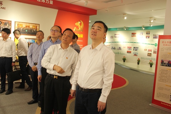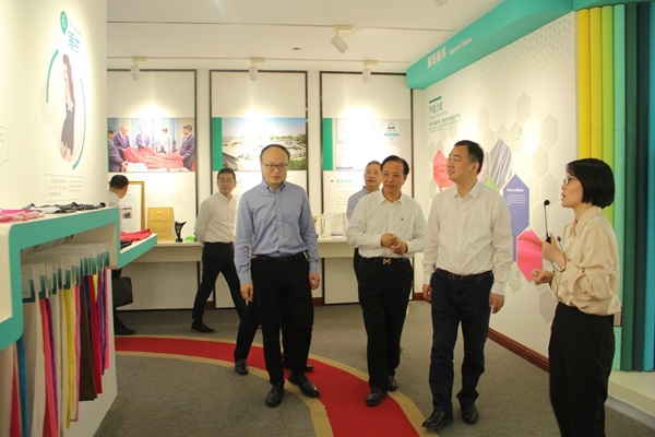 颜海荣一行在宏达党委书记、董事长沈国甫的陪同下,实地参观了公司党建展厅,详细了解了宏达党建品牌“经纬力量”、公司发展历程和生产经营情况。宏达党委作为有一定辨识度和影响力的两新组织党建示范点,通过搭建“经纬力量”体系,将“经”“纬”统筹应用,纵横成网、交叉成链,在凝心聚力中释放力量。颜部长充分肯定了公司党委在党建工作中取得的成效,表示宏达是一家有情怀、有理想、重党建、重持续发展的企业,提出宏达要继续坚持党建引领,凝聚党员组织力量,发挥干部引领作用,加快创新发展脚步,将公司特色亮点转化为实实在在的企业助推力、新动能,加速推进企业高质量发展,为嘉兴经济发展赋能。