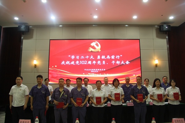 7月1日上午,中共宏达控股集团党委在公司会议室召开“学习二十大,勇毅再前行”暨庆祝建党102周年党员、干部大会,集团党委书记、董事长沈国甫率公司全体党员、干部60余人参加会议。