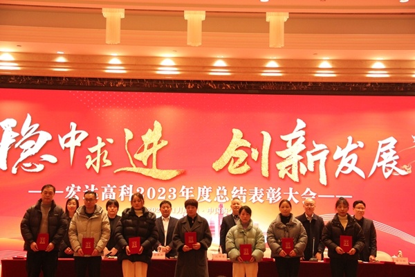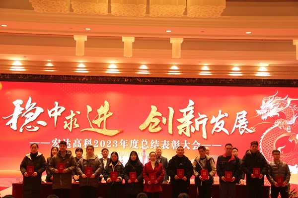 此次会议以“稳中求进 创新发展”为主题。会议表彰了2023年度优秀新人、优秀基层员工、优秀基层管理者、优秀中层管理者,以及2023年度生产实操技能考核优秀人员;获表彰的员工代表分别发表了获奖感言;营销中心经理陈永达就2024年销售工作作表态发言;副总经理金小红就分管的技术、工艺工作作表态发言;副总经理孙云浩就分管的生产工作作表态发言。