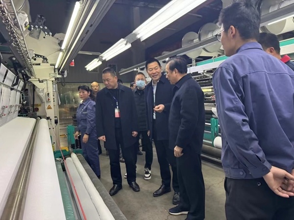 吕忠飞书记一行参观了公司生产车间,慰问全国纺织工业劳动模范、公司织造部主管赵巧娟,调研企业家和高素质劳动者,倾听企业高质量发展战略及人才诉求。