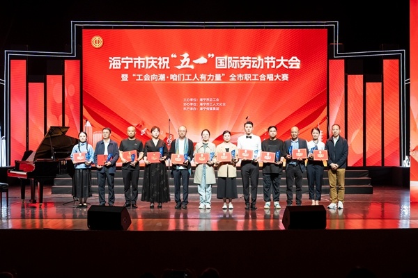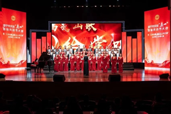 庆祝“五一”国际劳动节,唱响“劳动光荣、创造伟大”的时代主旋律!4月29日,“工会向潮·咱们工人有力量”全市职工合唱大赛在海宁市文化馆剧场举行。