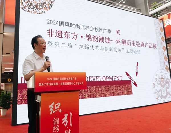 2024年8月12日上午,2024国风时尚面料金秋推广季暨海宁中国家纺城·杭海面辅料中心开馆仪式顺利举行,宏达高科董事长沈国甫与来自全国各地的中国家纺行业专家、领导一起出席开馆仪式。