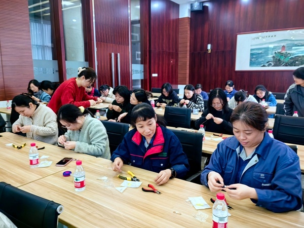 2024年11月23日下午,海宁市工人文化宫“爱在四季·工会有约”公益大课堂基层行活动走进宏达高科控股股份有限公司,为公司女职工代表带来了一堂幸福感满满的手串制作公益课。