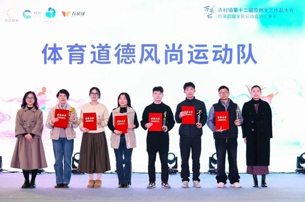 日,许村镇第二十届原创文艺作品大赛暨第四届全民远动会颁奖典礼上,宏达高科羽毛球队荣获许村镇全民运动会道德风尚运动队。