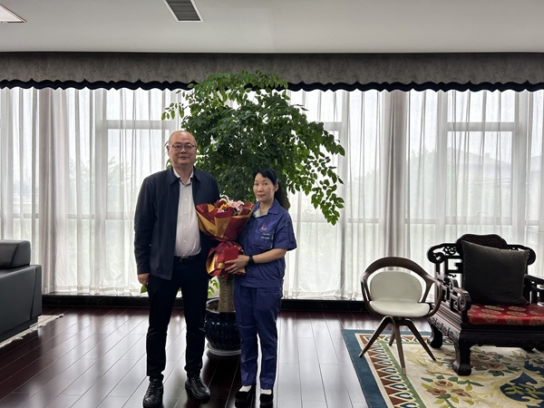 在第135个“国际劳动节”来临之际,4月27日上午,许村镇党委书记许新峰莅临宏达高科慰问全国劳动模范、宏达高科董事长沈国甫和浙江省劳动模范、宏达织造部助理赵巧娟,传递了党和政府对劳模的崇高敬意和诚挚关怀。