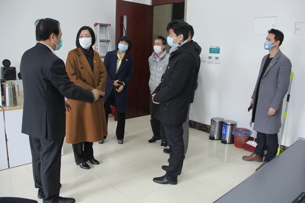 在公司值班室,董事长沈国甫对王龚部长带队莅临宏达高科关心指导新型冠状病毒肺炎疫情防控工作表示感谢,向龚部长汇报了公司防疫防控情况,从企业外地员工排摸、企业开复工计划、防控举措与物资配备等情况进行了详细汇报。沈董事长表示,公司从年初二起每天与每名员工保持联系,要求员工上报身体状况,同时对食堂、宿舍及工作场所进行消毒,针对复工后防控疫情需要,企业制定了“四个门”防控制度,从门卫、宿舍门、食堂门、车间门等四个方面减少员工不必要的接触,推出了进门量体温,车间员工采用送餐到车间,停止使用考勤打卡机,停止使用电梯,食堂采用一桌一人等制度。后期,公司将严格按照上级党委、政府的有关部署和要求,全力做好公司疫情防控工作,始终把员工的生命安全和身体健康放在第一位,为打赢疫情防控阻击战作出贡献。