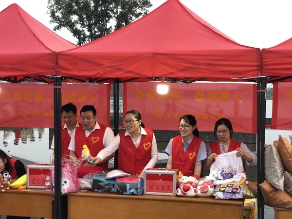 2019年5月31日傍晚,海宁市许村镇许村社区联合共建单位党组织、爱心企业、社会组织等多方力量,在许村龙渡湖广场开展了一场以“为爱赶集,温暖童心”为主题的爱心公益主题活动,宏达控股集团党委作为共建单位,派出了10余名党员参与活动。