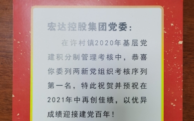 宏达控股集团党委在许村镇2020年度基层党建积分制管理考核中委列两新组织..
